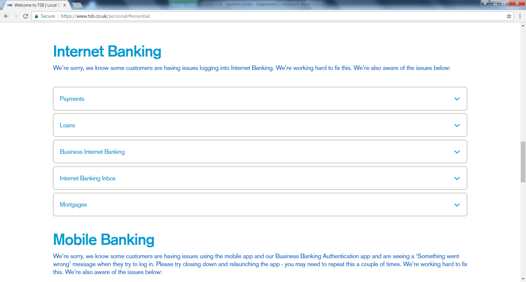 Despite assertions from the bank that the service was up and running as normal, news agencies and social media reported thousands of cases where customers contradicted the version of events from TSB. Over 40,000 complaints had been received by the TSB. TSB responded by offering customers 5% AER p.a. The increase in interest payments promised are expected to cost £30m per year.