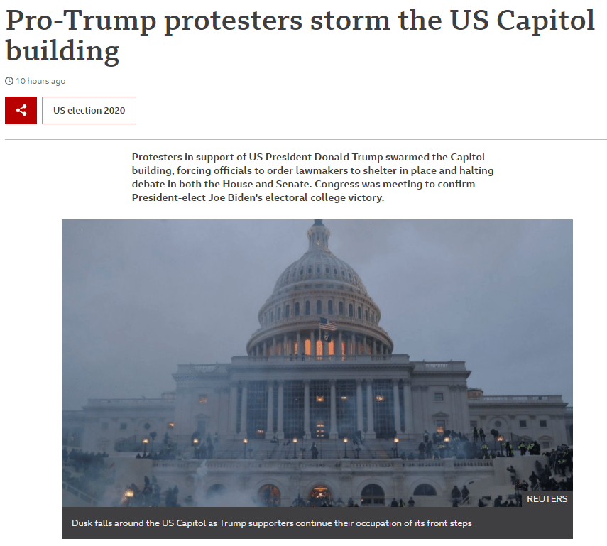 This week’s events (w/c 4 Jan 2021) at Capitol Hill where protesters broke in to try and prevent Joe Biden being confirmed as the next US president may have not been high likelihood on your Risk Register of events, but if you have followed the past 4 years it can be argued that the signs were there.